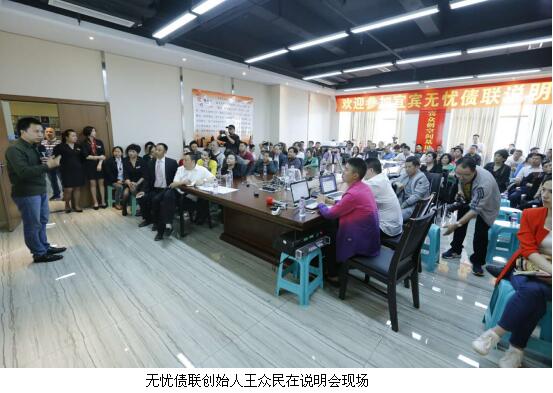 无忧债联创始人王众民在启动大会上致辞。并向参会人员介绍了无忧债联整体情况。他说:“无忧债联争取用最低的成本,最快的速度,多种途径减少债权债务,计划利用大数据技术,两年内采集1亿个债权债务数据,使300万家庭财务得到明显改善。”深刻讲解了债务减少减除的各种思维以及方法,展示了诸多成功案例,为广大陷入债务危局的听众带来福音。最后为大家分享了无忧债联秉承的五字真言“挡、缓、清、消、生”,即通过资产重组、债务重组、资产并购、搭建债务链、建立数据库、线上债务云、线下实物资产对冲、以及债转股和股转股等多种方式多种渠道,帮助个人及企业排忧解难,快速减少减除债权债务。