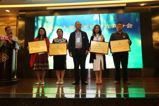 世界华人慈善家协会会长韦云华授予宜宾分会牌匾
