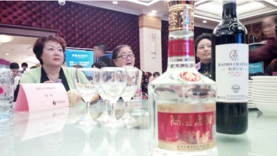 柏漠庄园董事长、总经理刘春荣向大家介绍了与五粮液合作的红酒柏漠庄园及高层定制酒