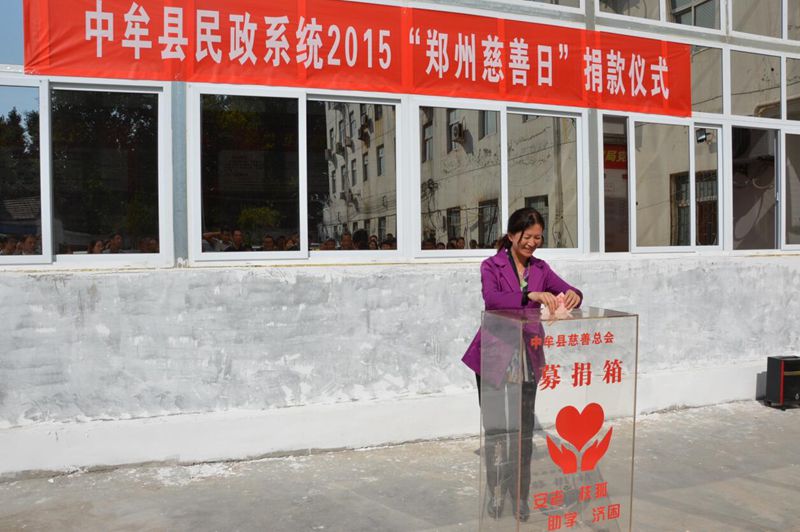 县慈善总会以“郑州慈善日”活动为契机,以“开展全民慈善  共筑和谐中牟”为主题,以“慈善乡镇行”活动为载体,精心策划、严密组织、精准实施,县四大班子领导亲临亲为,积极带头捐款,全县上下积极响应,捐赠数额连年攀升。其中2014、2015年连续两年位居郑州市各县(市、区)首位,荣获郑州市“最具影响力社会公益组织——特别奖”、郑州市“慈善风云城区”和“郑州慈善风云榜”慈善推动者奖等殊荣。通过“郑州慈善日”集中捐赠活动的成功举办,在全县范围内掀起了人人参与慈善,人人奉献爱心的浓厚慈善氛围。
