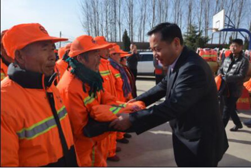 寒冬腊月,为城区800余名环卫工人送去了棉衣、棉鞋、雨衣、围巾、手套等慰问品。在春节来临之际,为可爱、可敬的“城市美容师”送去一份温暖,一份爱心。