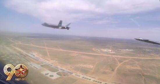 在庆祝建军90周年阅兵式上,我国自主研发歼-20隐形战斗机亮相。