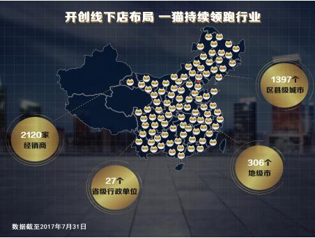 据一猫汽车网最新数据统计:截止到2017年7月31日,一猫汽车网线下店规模已达2120家,覆盖27个省级行政单位,306个地级市,1397个区县级城市。相较2017年6月,一猫用1个月的时间新增了145家线下店,线下店覆盖规模持续领跑汽车电商行业。数字不断刷新的背后,一猫实现快速布局原因是什么?