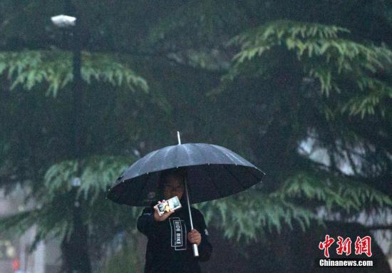 10月8日,北京市民在雨中自拍。北京气象部门预计,本次降雨将持续较长时间,整体累积雨量将达中至大雨。中新社记者刘关关摄