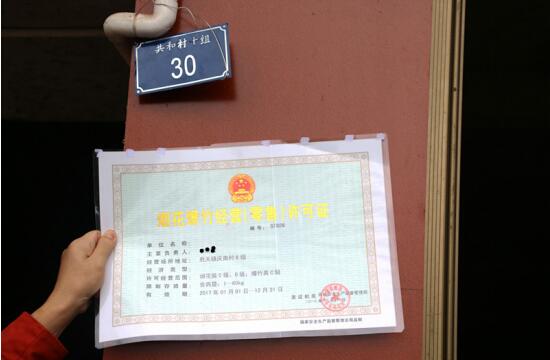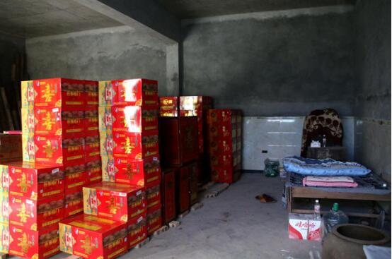 随后,报料人带领记者、民警和政府人员来到下一个存放点,共和村十组30号,在这个存放点,记者看到存放点的两边都有居民居住,里面存放烟花爆竹经清点为268件,高县安监局执法大队现场清算,含药量超过250kg,远远超标!烟花爆竹经营许可证上限制存放量:“含药量1-60kg”。经营场所是胜天镇庆南村6组,明显是异地储存。
