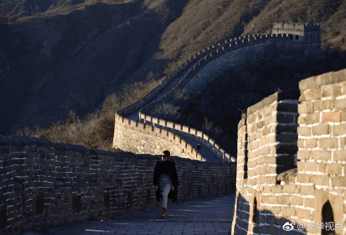 11月10日下午,美国总统特朗普夫人梅拉尼娅登上慕田峪长城,获赠“好汉证书”。北风虽然凛冽,但蜿蜒的长城气势磅礴,引得梅拉尼娅流连忘返。(记者朱超、燕雁)