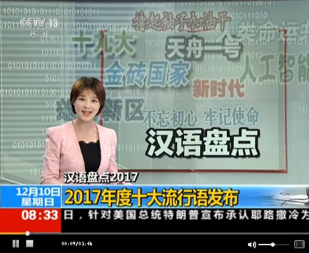 北京语言大学教授杨尔弘:在十九大召开以后,媒体也是在不断地梳理着各种各样的热词,所以它很自然的在我们数据提取的过程中就成为中国媒体的流行语。
