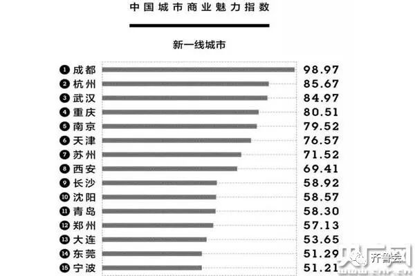 根据综合计算,北上广深4个一线城市的地位依然不可动摇,但15个“新一线”城市的席次有了一些改变,依次是成都、杭州、武汉、重庆、南京、天津、苏州、西安、长沙、沈阳、青岛、郑州、大连、东莞和宁波。这就意味着,成都领跑新一线城市,居于首位。