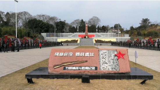 1998年建成"成都战役28师竹园铺战斗胜利纪念碑",碑名由原中央军委副主席刘华清上将亲笔题写。