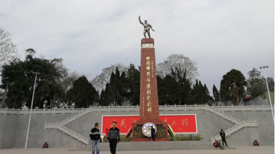 烈士陵园管理员朱功银向我们解说到“1949年12月14日,中国人民解放军第二野战军第10军28师在竹园铺全歼了号称"天下第一团"的国民党胡宗南嫡系27军91团。在这次战斗中,我军83团3营营长张德银、7连指导员王善修、侦察员李兴辉等87名指战员光荣牺牲。竹园铺战斗作为成都战役的前奏,为四川解放和全国彻底解放立下了不朽丰碑。为纪念在竹园铺战斗中英勇牺牲的革命烈士,井研县于1954年修建了竹园烈士陵园,并前后历经5次改建。