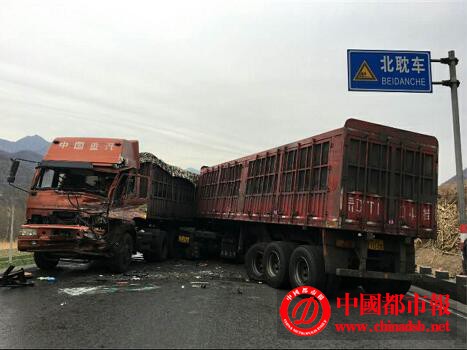 本报迅(记者仓超山西长治报道)2018年3月17日8:50分,豫晋交界一公路发生两辆大货车相撞交通事故,出事车辆严重受损,人员伤亡情况不详。