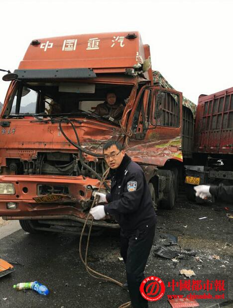 事故发生后,当地交警及被堵车辆中客车上部分乘客分别赶到现场,迅速参与到事故救援中。