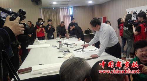 出席新闻发布会的著名书法家邱零、王孝书等,即席挥毫泼墨,为新闻发布会助兴。