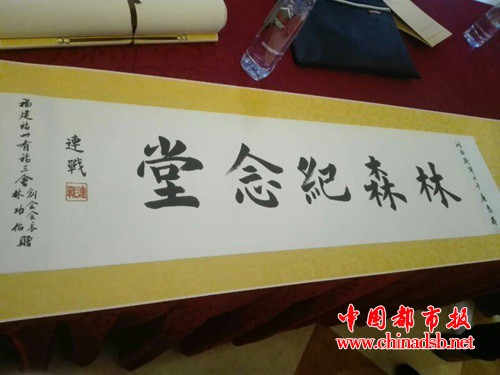 来自宝岛台湾的林氏宗亲会代表团向组委会:送上了原国民党主席连战为此次活动:亲笔书写的题字表示祝贺。