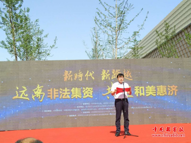 本报讯(记者 张学亮 实习记者 张建平 通讯员 朱 榕 薛文艳 魏 健 河南郑州报道)为切实做好新形势下防范和处置非法集资宣传教育工作,5月23日上午,惠济区防范非法集资宣传月集中宣传活动暨风险专项排查启动仪式在惠济万达广场举行。本次活动以“新时代,新跨越,远离非法集资,共建和美惠济”为主题,旨在通过宣传教育活动,提高社会对非法集资的识别能力,树立正确投资理念,营造防范非法集资良好氛围。区委常委、常务副区长李伟光,《中国都市报》常务副社长王长现、副社长刘瑞琴,区政府党组成员王保国,区法院院长彭连城,区检察院检察长谢凯歌及处非领导小组成员单位参加了活动。