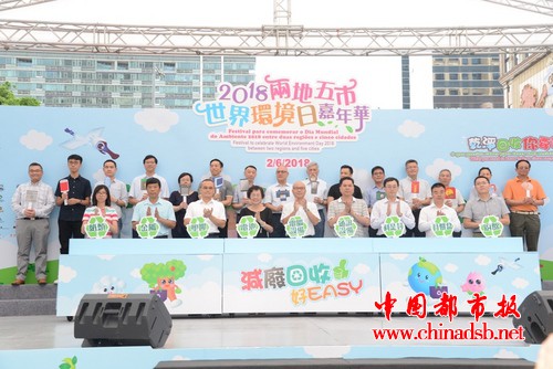 本报讯(首席记者 王瀚琳 澳门报道)环境保护局联合两地五市环保部门举办的“2018两地五市世界环境日嘉年华”今日(2日)下午假友谊广场举行,透过一系列舞台活动、摊位游戏、环保工作坊等向社会宣扬减废回收等环保讯息。