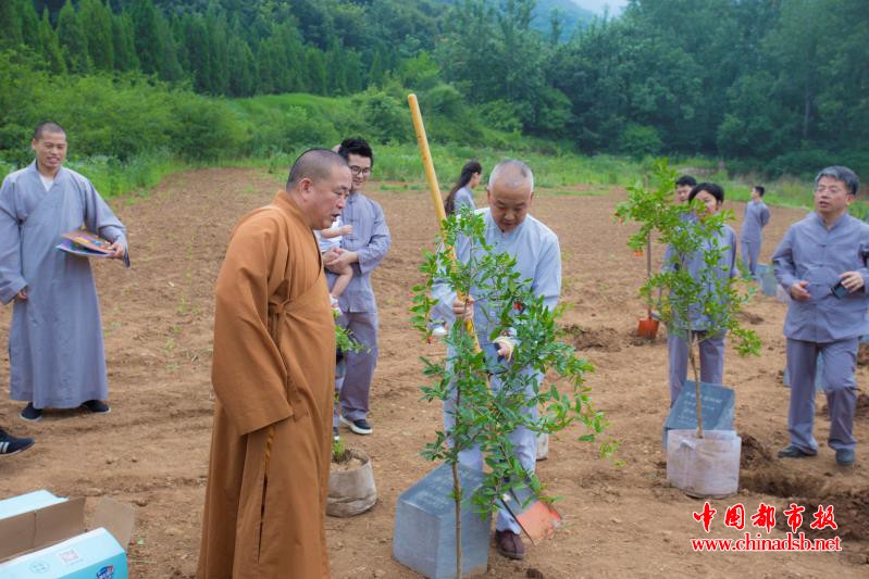2018年6月17日,少林寺禅耕农场举办第四期植福树活动。期间,少林寺方丈释永信大和尚亲临少林寺功德林植福树现场,并种下第一颗石榴树,为天下众生祈福!
