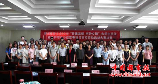 6月23日,由郑州市民政局、郑州慈善总会、郑州市老龄工作委员会办公室、郑州电视台联合举办的“2018‘传递温暖、呵护夕阳’大学生担任养老护理员公益慈善项目高校联动选拔大赛决赛”在郑州慈善总会如火如荼的开展。入选决赛的120名大学生、往届优秀学子、养老机构优秀护工、老人、社会各界爱心人士参加活动。