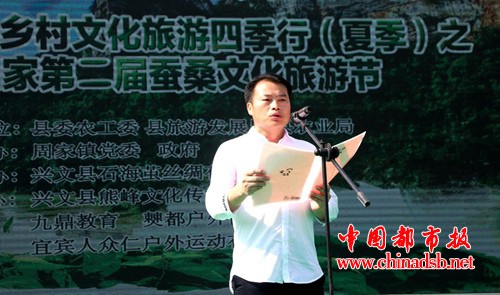 中国都市报四川报道(记者 卫智健 高学兵):7月29日,由宜宾市兴文县委农工委、兴文县旅游发展局、兴文县农业局指导,兴文县周家镇党委、政府主办,兴文县石海茧丝绸有限公司协办的“山水蚕乡秀美周家”兴文县2018年乡村文化旅游四季行(夏季)之四川·周家第二届蚕桑文化旅游节在兴文县周家镇新塘社区广场举行。
