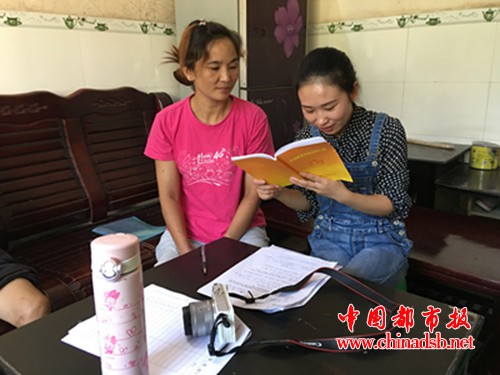 派驻第一书记王小雪(右)宣讲扶贫政策