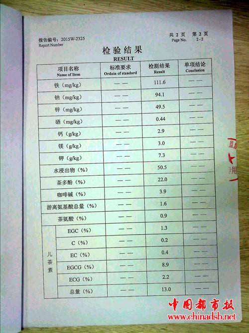 检测报告,龙山茶富含硒和锌(图片由大坪乡政府提供)