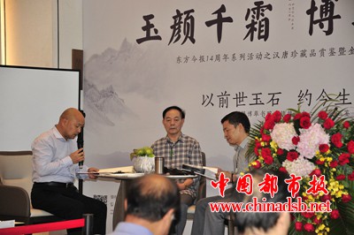 九三学社郑州市原主委、著名收藏鉴赏家陈奇男先生(所藏瓷器玉器在全国乃至世界均处于领先地位),河南博物院副研究员、文物鉴定专家赵文玺先生,《中国艺术与收藏》杂志总编辑、作家路舒华先生,文化大家与博物专家济济一堂,款款而谈玉石历史。