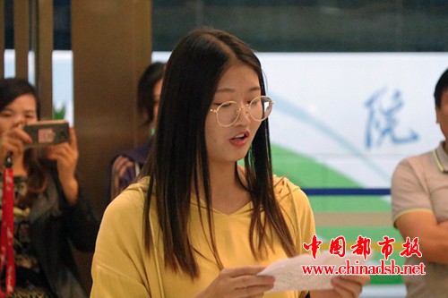 留学生代表陈焕焕同学首先代表赴英学子发言,她深情感谢学校的培养,感谢学校领导给予的宝贵留学机会,感谢老师们对他们的悉心教导。陈焕焕同学说,正是有了学校国际化办学的盛举,有了学校领导的全程关怀,有了雅思班的开创,才有了他们的今天和美好的未来!四年郑财人,永远郑财心。他们将牢记厚德、励志、笃学、敏行的校训,秉承团结、勤奋、求实、创新的校风,在新的学习环境中奋发图强、精益求精,以优异的成绩回报母校的培养与厚爱。力争早日学成归来,为国效力,为校添彩!