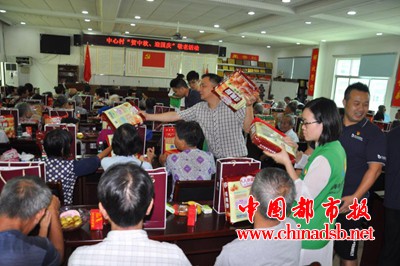 21日,理想大家庭协会还携手三灶中心村委党支部一起慰问村内的120户老人家。大家先是在中心村公共服务站为现场来到的100多名老人进行中秋慰问,由党支部书记送上祝福和节日礼物。