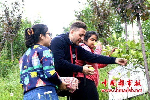 吸引来的留学生在采摘柠檬(摄影高学兵)