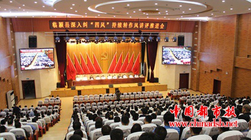 在河南省临颍县召开深入纠“四风”、持续转作风讲评推进会,总结工作、查找问题、部署任务,持续发力、久久为功,推动作风建设向纵深发展。突出工作重点:临颍县持续抓好问题查摆。结合中央巡视反馈意见整改,进一步对照查摆,把问题找全找准找透。全力抓好问题整改。把握边查边改、集中整改、常查长改三个环节,建立督查整改意见反馈制度,定期通报整改完成情况,不断扩大整改成果。统筹抓好建章立制。把解决问题和制度建设结合起来,以制度建设成果保证作风建设成效。突出“亮查评强”。临颍县深入纠“四风”、持续转作风行动以“三亮三查三评三强”为载体和重要抓手。“三亮”工作在抓深化上下功夫。临颍县进一步厘清权责清单,全面落实首问负责、一次性告知、限时办结等制度,积极为群众提供“一站式”服务;不断扩大工作成果,形成管长远的机制,确保“三亮”工作制度化、规范化、常态化。“三查”工作在抓拓展上下功夫。该县不断加大督查力度,利用媒体“曝光台”,进一步健全问题线索全面收集和共享机制,针对发现的问题,建立工作台账,明确责任单位、整改时限和工作标准,确保事事有结果、件件有回音。“三评”工作在抓长效上下功夫。通过启动评议监督,认真总结纠“四风”、转作风行动推进情况,持续传导压力,营造浓厚氛围。“三强”工作在抓典型上下功夫。临颍县深入开展“双争”活动,引导各级领导班子和领导干部比学赶超、争先创优,注重发现、选树和表彰先进典型,把精气神凝聚到干事创业上,激励广大党员干部新时代新担当新作为。突出载体创新。临颍县开展“一把手”换位体验活动,开办《百姓问政直通车》电视问政节目,推动作风建设持续深入开展。建立健全手机评议二维码系统。在县直有审批、执法、服务管理、便民服务职能的基层单位和服务窗口,张贴手机评议二维码,使服务对象可以扫二维码给办理人员“打分”,评价结果纳入全面从严治党绩效考核,倒逼机关转变工作作风、提高办事效率。突出工作保障。临颍县充分发挥领导小组办公室的职能作用,以高的标准、严的要求、实的作风,认真履职、扎实工作,推动作风建设不断取得新成效。积极做好工作的部署,加强调查研究,全面掌握实情,有针对性地加强指导,切实推动纠“四风”、转作风活动稳步开展;持续做好正反典型选树工作,以正面典型引路,以反面典型警示,抓好推进落实;结合打赢“三大攻坚战”、经济发展、“阳光临颍”、扫黑除恶等县委、县政府重点工作任务,以及县委正在深入实施的“六个大胆探索”,努力以作风转变推动工作有效落实;结合临颍县实际,完善评议工作方案,扎实推进“评议+巡察”工作。