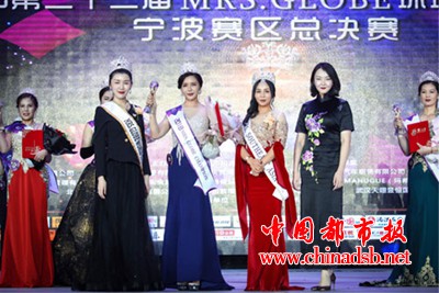 2018年第二十二届MRS.GLOBE环球夫人大赛宁波赛区总决赛圆满举办,获奖选手将于11月12号到北京水立方(国家游泳体育馆)代表宁波赛区参与环球夫人大赛中国区总决赛。获得中国区总决赛总冠军及民选冠军将代表中国与近80个国家的夫人们同台竞逐桂冠,向世界展示中国女性的东方优雅。