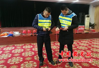 培训课堂上,由专业的培训老师讲授理论,然后培训老师与受训队员们进行互动交流,进行操作演练,譬如绳子该如何打结,如何规范进行包扎,如何使用消防器材……在所有的流程结束后,培训结束后将对参训学员进行结业考评,确保学员们掌握应急技能。