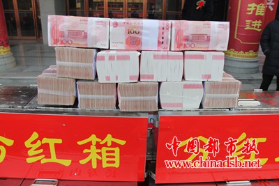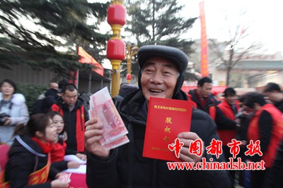 2019年1月13日,正值传统腊八节,经济联合总社为了让全体社员充分分享这次改革发展的实际红利,激发干事创业的澎湃动力,提前从下属的集体经济实体中提取一部分收益金,集中为一万多名社员现场每人发放100元现金。