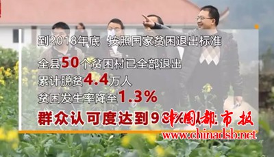 建立回帮巩固机制,时时回头看,年年回头帮,确保稳定增收不返贫。3年间,全县投入回帮巩固资金1837万元,保增长、补缺漏、兜硬底,有8570名贫困人口享受低保兜底,2300个贫困劳力(半劳力)走上公益岗位;2503个贫困家庭中的4646名“三无”人员通过投资收益稳定增收;贫困人口医疗、教育得到全面保障,其中3618人得到教育救助,15118人次得到医疗救助,17万人次通过培训发展能力明显增强。三年攻坚磨砺苦,换得苍生幸福长。到2018年底,按照国家贫困退出标准,全县50个贫困村已全部退出,累计脱贫4.4万人,贫困发生率降至1.3%,群众认可度达到98%以上,经县自查、市初审,贫困县摘帽“一低三有”全面达标。