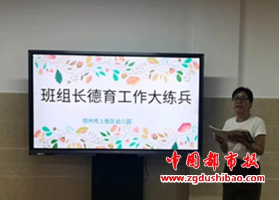 本报讯(记者李国杰 通讯员李志茹 郑州报道)9月25日下午,上街区幼儿园举行教师岗位大练兵----班组长德育工作交流分享活动。园长韩全红、支部书记耿金诺、副园长赵邦磊、尹华以及保教主任王君丽担任活动评委。