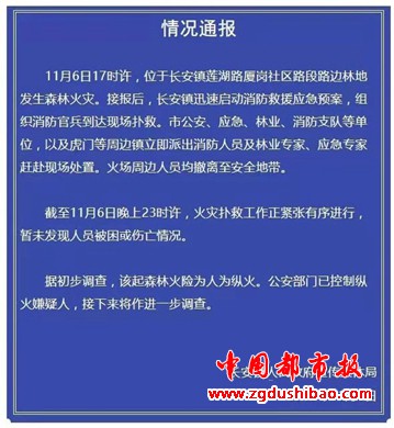 本报讯(记者李方 )东莞报道:11月6日傍晚17点许,位于东莞市长安镇莲花路,厦岗社区路段路边林地发生森林火灾。