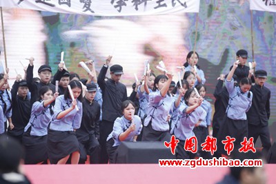 随后,井中师生们精心准备的文艺展演拉开帷幕。文艺展演分为三个篇章,序曲“廖平思变,兴学发轫”,在情景舞蹈《百年风云,神州觉醒》中开启。第一篇章“国学儒韵,底蕴深厚”以国学文化为主,配乐诗朗诵《国学儒韵》《井中百年华诞赋》、情景舞蹈《万事点灯》、音诗画《先生之风,山高水长》,分别从不同角度展示了代代相传又历久弥新的国学文化和井研中学的办学传统。