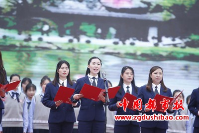 第三篇章“引水思源,师恩如海”,配乐诗朗诵《师恩如海》、女子群舞《饮水思源》、情景歌舞剧《同桌的你》充分展示出井研中学当代师生风采。弦音振动,鼓乐吹笙,井研中学全体师生合唱的《井研中学校歌》呼唤师生不忘初心、追梦起航。整场演出主题鲜明,内容丰富,精彩纷呈、高潮迭起。