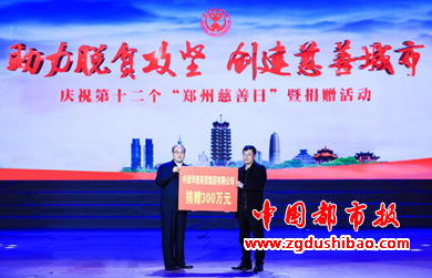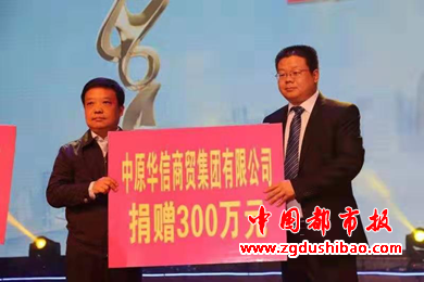 2019年10月16日,“助力脱贫攻坚创建慈善城市”——庆祝第十二个“郑州慈善日”暨捐赠活动在郑州群众艺术宫成功举办。在活动现场捐赠仪式上,中原华信集团副总裁罗道培先生代表中原华信集团向郑州慈善总会捐赠爱心善款300万元。