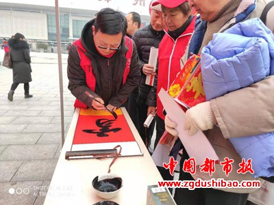 本报讯(记者姜德兴)郑州报道: 1月10日,全国迎来春运第一天,各个车站也迎来了第一个返乡客流量的小高峰。为确保春运顺利进行,让广大农民工兄弟体会到郑州的温暖与关爱,郑州慈善总会“爱心手工项目”爱心织女团的志愿者们早早来到郑州火车站西广场,为农名工带来亲手编织的围巾,国学的孙海潮老师现场为大家书在定制的挂历写“福”,还有现场手工剪纸做窗花,现场做中国结,不仅仅温暖回乡路,更是送“福”中国年。暖暖的围巾,苍劲有力散发着墨香的挂历,精美的窗花和中国结吸引大量旅客的围观和排队领取,大家也纷纷举着“决胜脱贫攻坚 共建慈善之城”、“加入我们,温暖一座城”、“温暖回乡路 共筑留守情”的牌子和郑州合影留念。