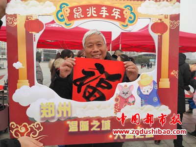 来郑州打工的刘大爷开心的告诉大家:围巾很厚实暖和,拿着写了“福”字的挂历也有过年的感觉了,开开心心回家过年了,郑州,过了年,我还来!