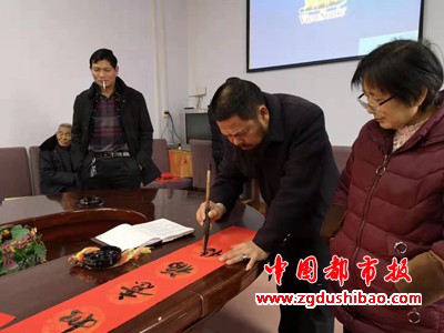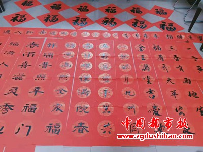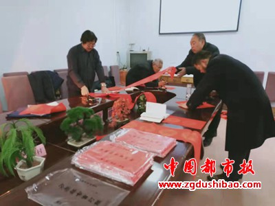本报讯(记者袁宏太 通讯员王文森)郑州报道:1月16日上午,中国书法家王文森及口子村几位老师,冒着小雪走进荥阳市汜水镇口子村开展义写春联活动,为村民送上新春的祝福。