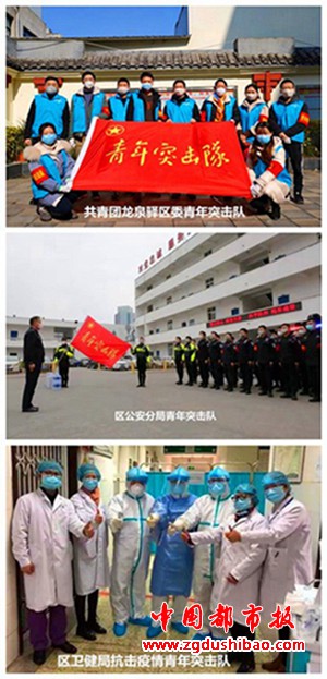 本报讯(记者郭旭东)成都报道:2020年的春节,正当万家团圆时,因为新型冠状病毒引发的肺炎疫情,一场看不见硝烟的战争就此展开,无数人放弃与家人的团聚,不舍昼夜地奔忙在疫情防控一线,这里面就有许多青年人的身影。在防控新冠肺炎的严峻斗争中,共青团成都市龙泉驿区委坚持党旗所指就是团旗所向,坚决贯彻落实习近平总书记重要指示精神,把疫情防控作为当前最重要的工作来抓,积极号召全区基层团组织、团员青年组建青年突击队,充分展现了党的助手和后备军的担当,充分彰显了共青团生力军和突击队的作用,为坚决遏制疫情蔓延势头、打赢疫情防控阻击战贡献青春力量。