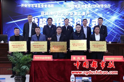本报讯【记者孙守广 通讯员亢建超、韩吴琦】3月18日上午,开封市市场监督管理局与中国邮政储蓄银行开封分行“政银携手 助力企业复工复产”战略合作协议正式签订。杞县方圆欣泰商贸有限公司、河南天健生态农业开发有限公司等五家企业现场获得授信3200万元。