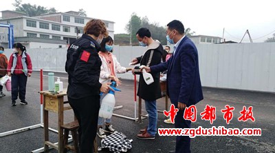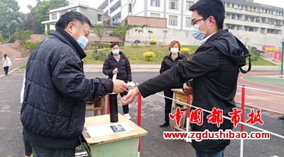 嘉乐中学校长黄守龙、副校长刘兵坚守校门防控