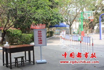 学校用醒目的标线和图示指引学生一天的在校学习规范、有序。从进校门起,用护栏、警戒线划分出学生每天上学放学,课间休息,上下楼梯,上厕所,排队洗手,异常学生到观察区和观察室的通道,并在通道的地上贴上小脚印,让学生直观地知晓行走路线。