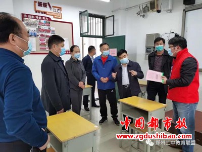 本报讯(首席记者姜德兴)郑州报道: 4月12日下午,在二七区区长苏建设的带领下,区教体局、区卫健委、区建设和交通运输局、区市场监管局、嵩山路公安分局等部门领导一行20多人到郑州市第二初级中学实地督导了初三复学工作的准备情况,校长姜波、工会主席陈胜等学校领导迎接督导。