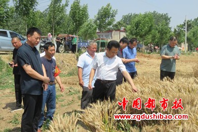 临颍县人大常委会主任孙玉鼎来到田间地头,查看小麦收割进度和秸秆禁烧情况。