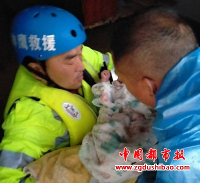 新安一大队马小红队员,作为一位女同志更让人值得敬佩!到达一线奋不顾身的去商户寻找被困人员,将受灾人员搀扶到救援车上;杨保锋队员在民房搜救的被困人员是一位年龄最小的小孩,队员杨保锋抱着熟睡的小孩,孩子并没有哭没有闹,小宝宝也知道神鹰救援队没有放弃救援!