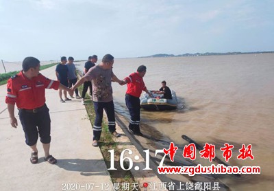 7月10日,闻讯江西省鄱阳县受灾严重,神鹰救援应急救援小组便又从安徽省安庆市出发,冒着大雨赶往江西省上饶市鄱阳县,由于长江水位上涨 导致中途村庄受灾被淹 道路断行,只得绕路而行,于下午3点进入鄱阳,3点40分到达鄱阳县昌江段, 当时水位已经特别高了 大雨还未停止,情况非常危急,队员们立刻下车安排救生装备实施救援,位于昌洲大桥附近的多个村庄已被深深地泡在洪水之中,神鹰队员们迅速出动驾驶冲锋舟协助当地武警、消防官兵将百姓安全运送出村……
